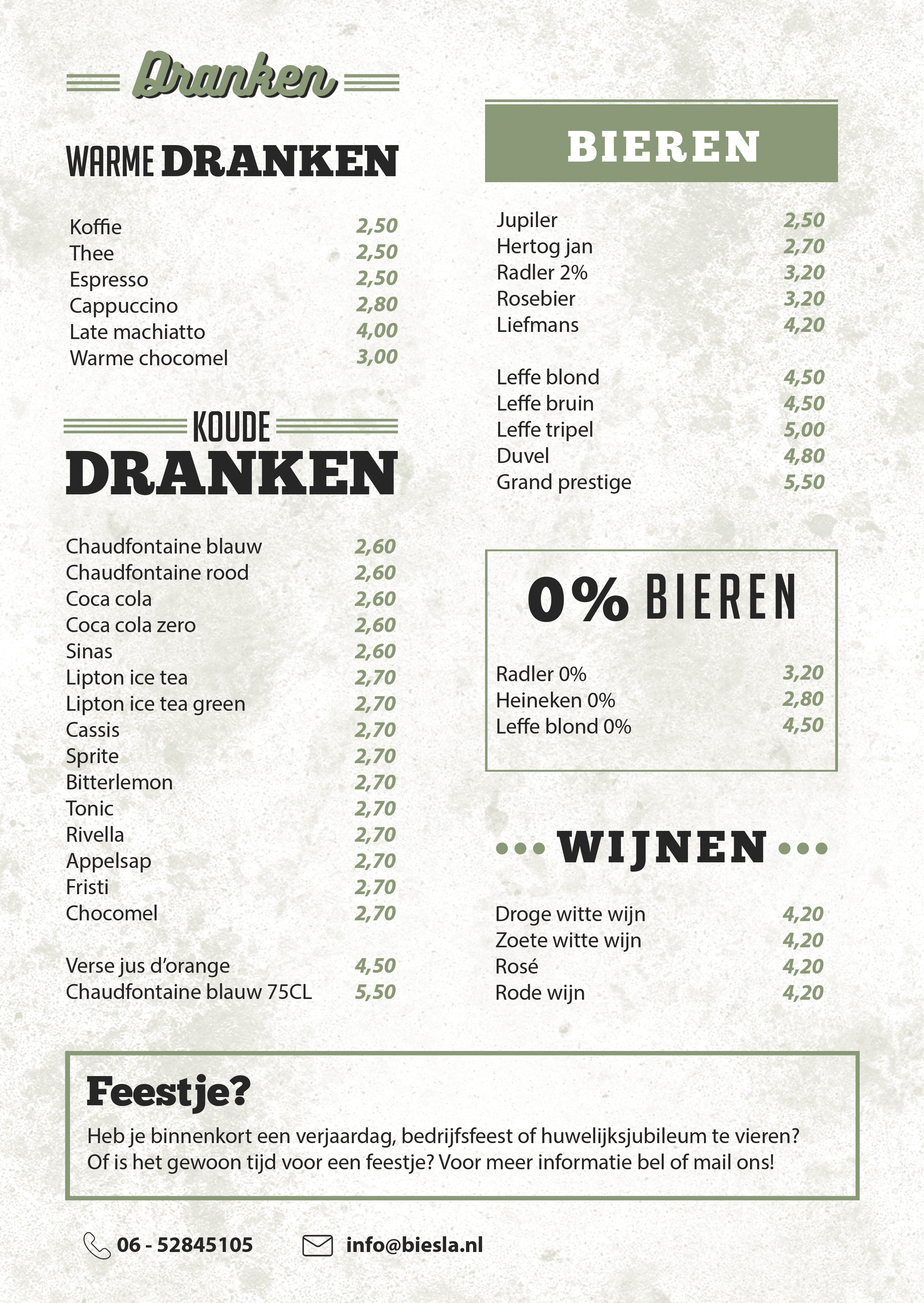 U kunt contact op nemen met Lunchroom Biesla via info@biesla.nl. Uitsluitend voor reserveringen kunt u bellen 06 52 84 51 05.
